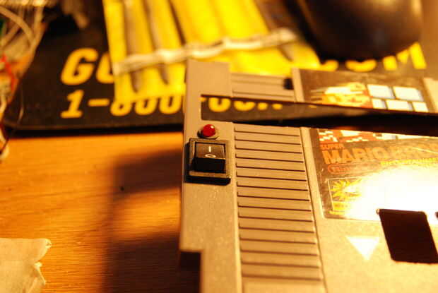 La siguiente parte era poner la CPU entre los puertos conector y regulador y virar hacia abajo con pegamento caliente. A continuación pegué caliente los puertos de controlador, junto con las salidas de AV. Ahora tenía que encontrar un buen lugar para conectar la alimentación, así que elegí uno de los puertos de controlador. Había soldado el poder interruptor a positivo en el control, y la negativa hace lo mismo. Lo único por hacer era montar el tablero de regulador en y atornille el caso cerrado.