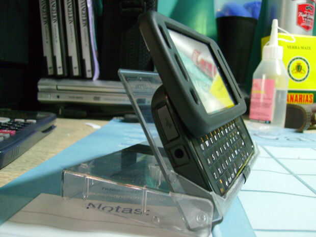 Cuando trato de él hacia fuera, me doy cuenta que tuve que hacer algunos cortes adicionales. Una era en la parte delantera del soporte, así que dosent cubra el teclado del teléfono. Otro uno estaba en la cubierta posterior, por lo que el teléfono estará en un ángulo más agradable, usted verá lo que quiero decir en las fotos.