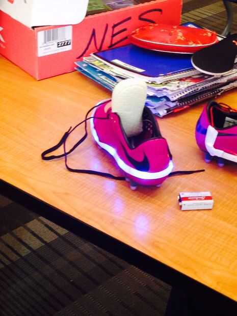 Al construir la zapata hay que pensar en la effeiciency de él. Si vamos a hacer luz calas, donde se encuentran que ser durable y agua prueba. Con falta de dinero para suministros confiamos en nuestras mentes innovational. Decidimos utilizar una tira de LED que podemos pegar a la suela de los zapatos. Tomamos una batería de 9 voltios y construido en el interior heal de la zapatilla. Utilizamos los cables para conectar los dos. Ahora con los cables, tiene que hacerlo para no conseguir tirar hacia fuera fácilmente o en mal estado si llueve. Construimos los cables que van dentro del zapato, así que no conseguir extraer jugando y si llueve no se mojan. Hicimos el zapato por lo que puede cambiar la pila o carga. Fue tiene una larga vida útil.