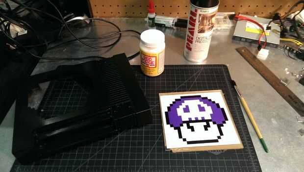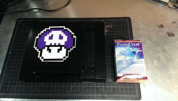 A continuación llegó el momento de tener la imagen montada. Imprimí la imagen en vinilo blanco de inyección de tinta, había rociado con un protector de la foto y había adherido a una pieza de acrílico transparente. Entonces tomé mod podge y había cepillado sobre la imagen, que actúa como un sellador y protegerá a la imagen. Ahora ya que mi impresora es una tinta del tinte base, el protector de la foto es una necesidad antes de la modge podge. Esto es porque los impresoras dye base agua para que correrán las tintas o racha cuando se cepilla el mod podge en (si está utilizando una impresora de tinta base de pigmento puede saltarse el paso de protector foto e ir a la derecha para el mod podge puesto que no raya la imagen). Una vez seco, entonces tomé algunos epoxy y pegado el acrílico en la parte inferior de la caja (dejar que el epoxi totalmente secado y cura). Ahora ya que la imagen se monta en el bajo lado de la caja que deja aproximadamente un 1/8 receso. Entonces tomó una 2 parte la resina de epoxy y había derramado sobre la imagen. Usé un nivel antes de verter la resina para asegurarse de que el caso era completamente acostado. La constancia de la resina se forma alrededor del corte de la imagen agradable y uniforme. La resina tarda aproximadamente 72 horas para curar totalmente con un vaso como el brillo que.