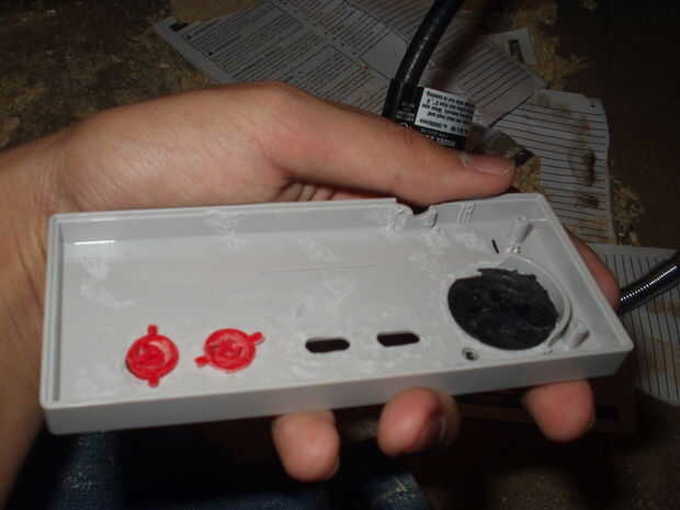 El Start y Select fueron sin embargo un problema diferente. Eran de plástico y no podía ser dremeled. No quiero cortarlas, porque entonces no permanecen en el controlador, pero que fueron creando una protuberancia muy notable.