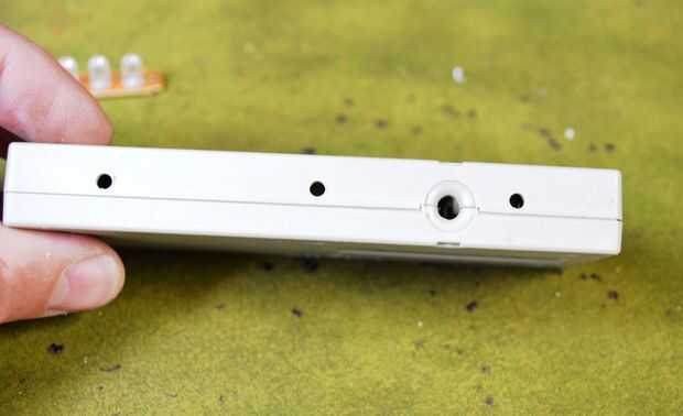 Siguiente paso es decidir donde hacer los agujeros en el controlador para el LED. Como mi bicicleta luz tenía 5 LED fui con 3 en la parte superior y 1 a cada lado.