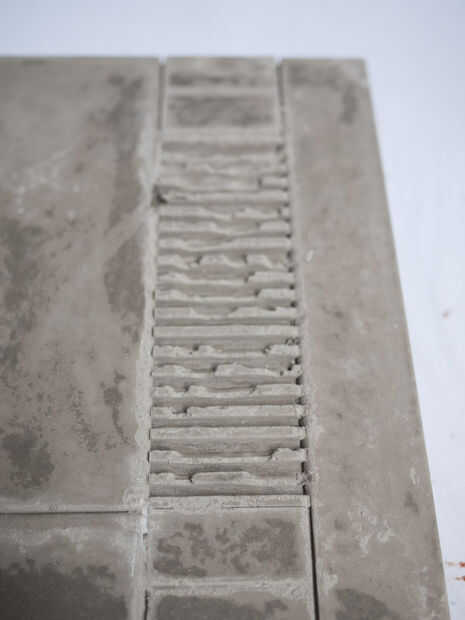 Si nos fijamos en las fotos 1 y 2 aquí a ver mi primer intento. Dos cosas fueron mal aquí: el cemento no era lo suficientemente bien mezclado y el molde tenía cortes en las rejillas de ventilación que se desprendió cuando saqué el molde. La primera vez que el concreto premezclado lo probé todo en una sola vez. Tomó para siempre a mezclar y ya entonces fue irregular. Parece angustiada, que es un poco fresco, pero no lo que yo iba.