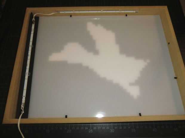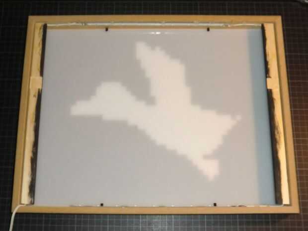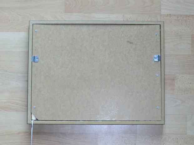 No pude encontrar un marco, que tenía la derecha grosor y tamaño, por eso solía espaciadores de madera tornillo de la parte trasera a. Como se puede ver en la segunda foto, me olvidé las cosas metálicas que sostienen el marco. Así que tuve que cortar un poco de la madera, es probablemente mejor Coloque a los espaciadores en los lados largos, con el fin de ahorrarle la molestia.