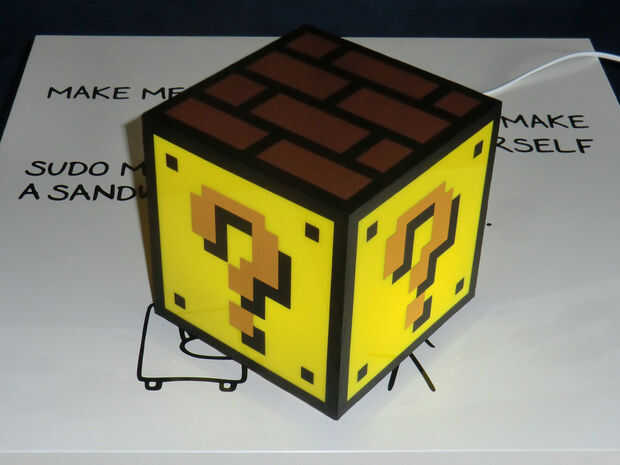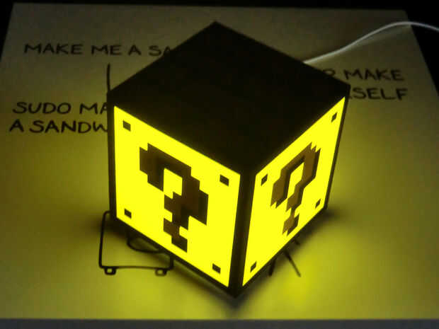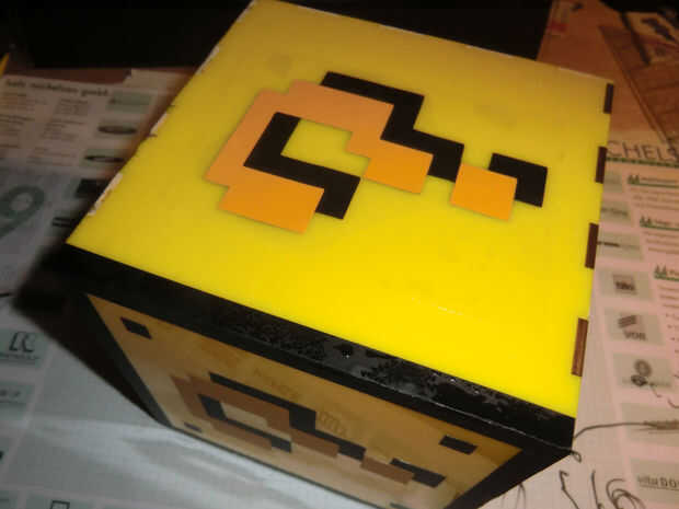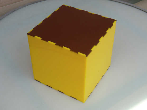 Empieza por tomar con cuidado la llave en forma de lámpara aparte. He subido los archivos, así que usted puede cortar su propio bloque. He utilizado madera contrachapada para la parte inferior y el espaciador (dinero seguro, pero puede utilizar acrílico así). Pintura de aerosol de la parte superior marrón y montar el cuadro, por cuidadosamente pegando los lados juntos.