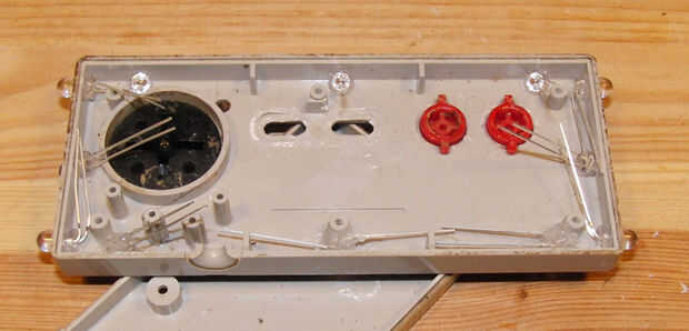 Una vez que el adhesivo se seque, el rojo A y B botones deban cortarse desde el interior para que coincida con la superficie plana. Usar una herramienta dremel con una broca cortadora para cortar los botones abajo al ras con la parte interior superficie.