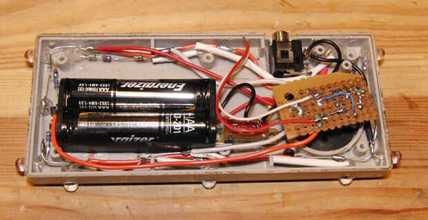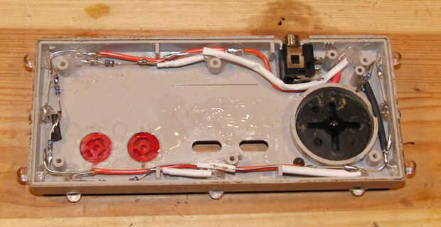 Los conductores positivos están conectados juntos y se conectará directamente al terminal positivo de la batería. Plan sobre el uso de 2 baterías recargables AAA que crean 2,4 voltios. La caída de voltaje de los LEDs yo estaba usando es de 1.9 a 2.5 voltios. Puesto que la tensión de suministro y caída de voltaje del LED son prácticamente iguales, usé los resistores más pequeño tenía, 3.3 ohm. Un resistor fue soldado cada cable negativo.