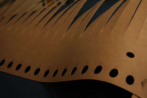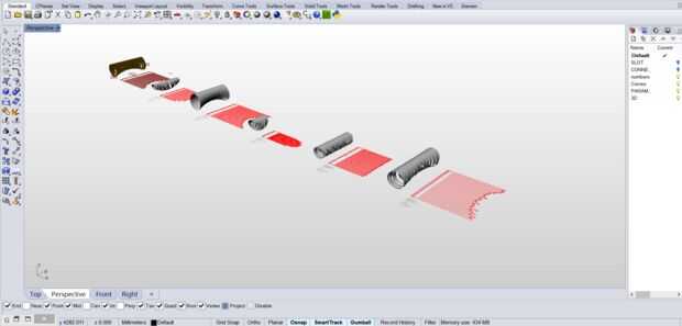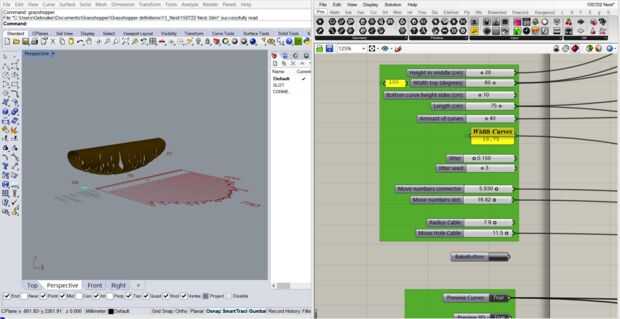 He estado trabajando en la definición de grasshopper a algún tiempo, partiendo de ser un usuario principiante de saltamontes. Así que supongo que puede ser algunas piezas raras en él o puede ser un poco desordenada. Los parámetros incluyen longitud, altura, cantidad de tiras, aleatoriedad y la opción de cambiar la pieza para conectar la tira (está en la capa "conexión" y "slot" de rhino). Genera los números correspondientes a cada lado para crear la lámpara que ves en la vista previa en 3D. La definición requiere el plugin de Fabtools.