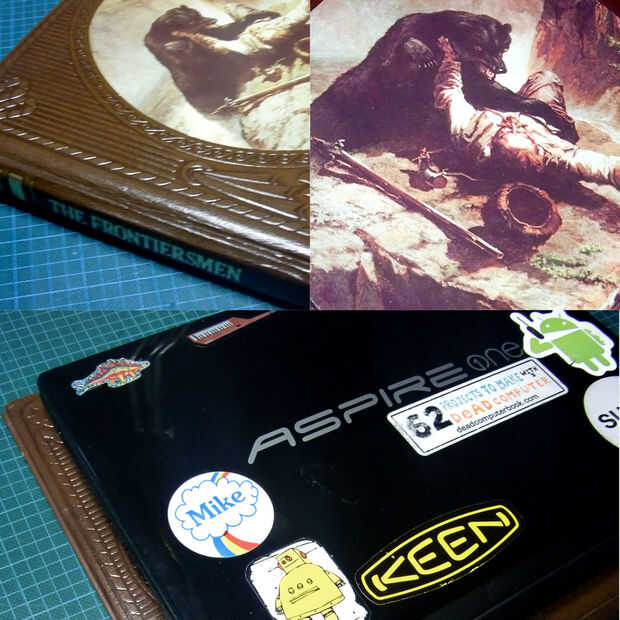 Asegúrese de que el libro que elegiste es ligeramente más grande que tu netbook en todas las dimensiones (ancho, profundidad y altura). Mi netbook medidas 260mm(w)x184mm(d)x30mm(h) [10,25" x7.25"x1.25"], las imágenes muestran cuánto espacio había dejado alrededor de la netbook cuando se comparan con el libro de tapa dura. Quieren un ajuste ceñido, así que probar y encontrar un libro que se parezca a tu netbook.