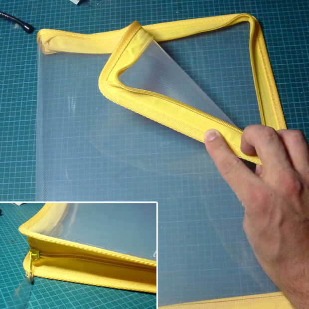 Rasgar las costuras y quitar la cremallera desde el donante.