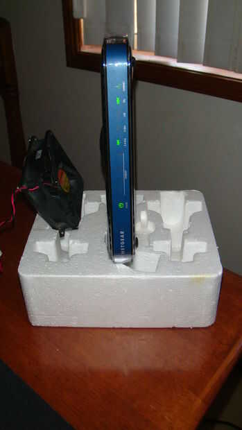 Asegúrese de que la brecha en la caja de la espuma de poliestireno es un ajuste perfecto para los ventiladores de refrigeración y el módem/router.