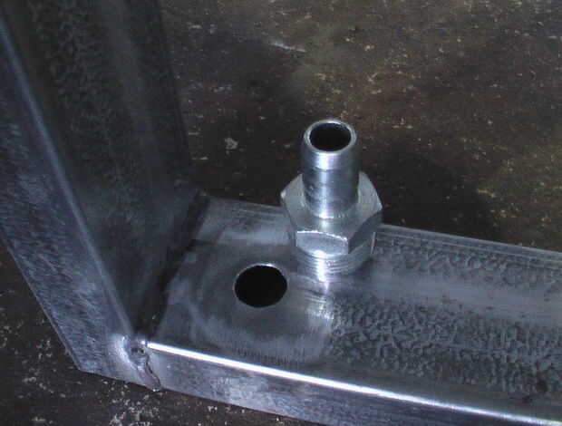 Un lugar para el conector de la manguera ir. Perfore un agujero en el medio tubo a una buena distancia de donde el neumático se y claro del tubo vertical. soldar conector sobre el orificio (hermético).