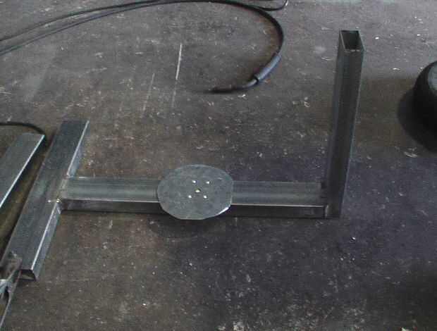 La tercera pieza de tubo es soldado con autógena (hermético) en el base final de la forma de T y apoya los puntos de anclaje para el brazo de eje de balancín (véase el paso numero 7).