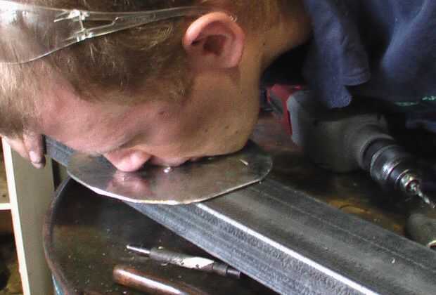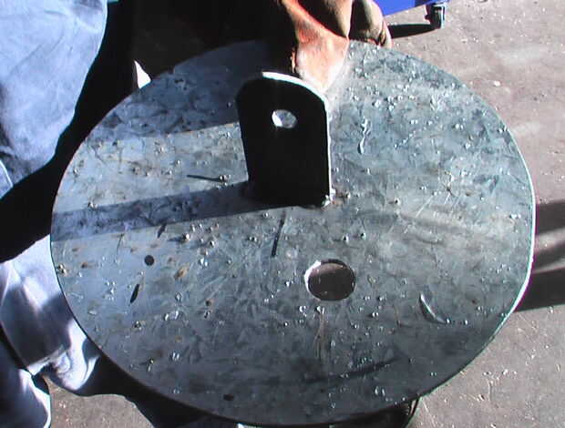 1 la válvula de salida en la base debe ser en el medio donde el neumático va a ser. Marcar este punto y perfore un agujero de 20mm (3/4 de pulgada), limar asperezas.