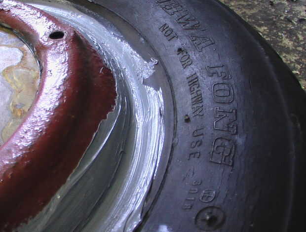 Difundir silicona por todo el interior neumático aprox 1 mm de espesor utilizando un pedazo de cartón convenientemente formado.