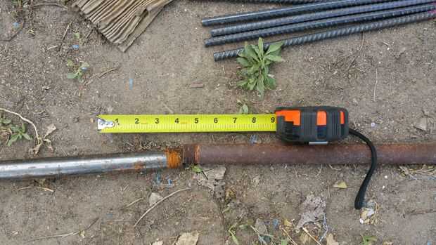 Pone uno de los tubos en el suelo. Inserte la varilla en el tubo de salida de 4 pulgadas (102 mm) de la varilla expuesta. Con una mano, sostenga la varilla al lado de la tubería para que no se mueve. Con la otra mano, coloque el segundo tubo en la parte expuesta de la varilla y unir los dos tubos como se ve en la foto 2.