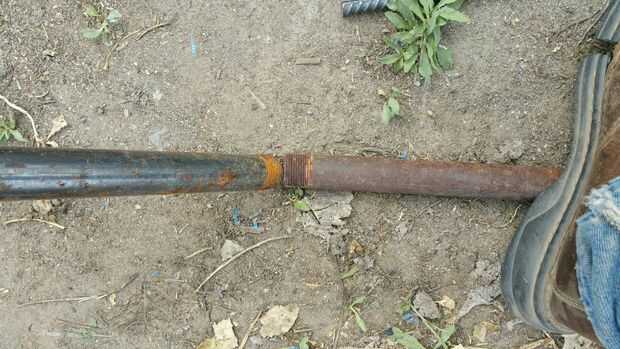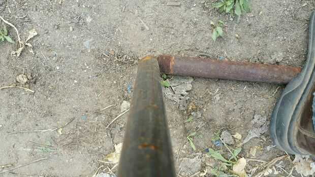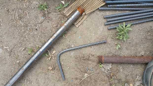 Luego, coloque su pie en el primer tubo y con la mano, tire del extremo de la segunda tubería para doblar la varilla como se ve en las fotos 3 y 4. Foto 5 muestra la varilla doblada. Siga este procedimiento para las barras restantes.