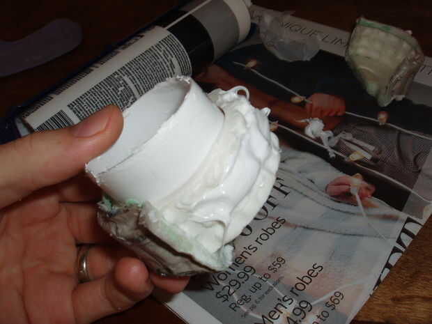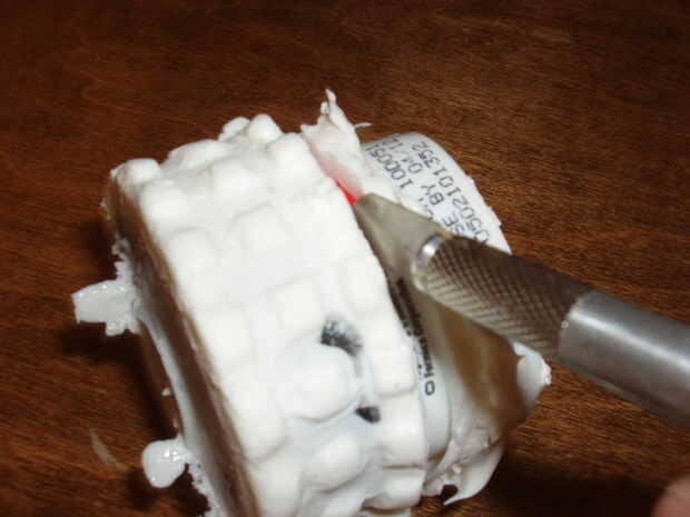 Yo tenía algunos huecos de mi molde que tenía que llenar. Acaba de tomar llano silicona vieja, directamente desde el tubo y smooshed en los huecos en la banda de rodadura. Luego pegué los moldes en para otro día. Al cambiar los moldes, les rotaba 90 grados de cómo se colocaron originalmente. Esperaba que esto mitigaría los defectos en el molde (y el moldeador).