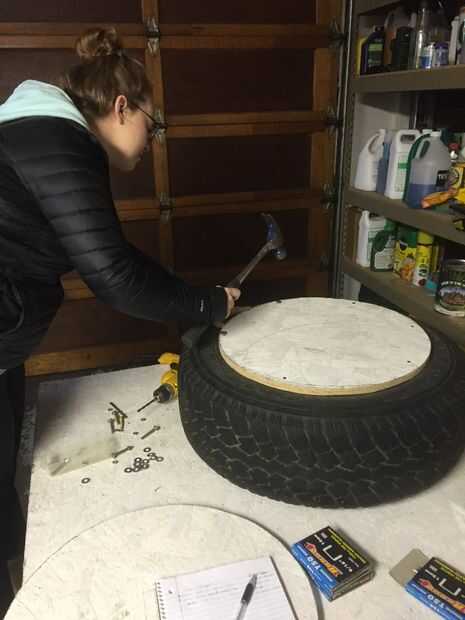 Tabla de neumáticos y otomanos para una sala de juegos!