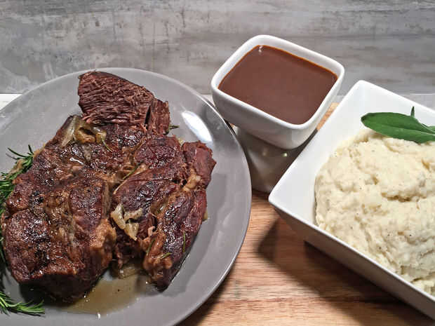 Neumático grasa hierbas carne asada con salsa de carne jaja Brew. Muy fácil esta variación en la cocina Americana tiene muchos pasos interesantes... Cuando está recogiendo los alimentos para este plato recuerda paso uno agarra un 12 pack de nueva Bélgica grasa neumático Amber Ale.