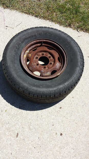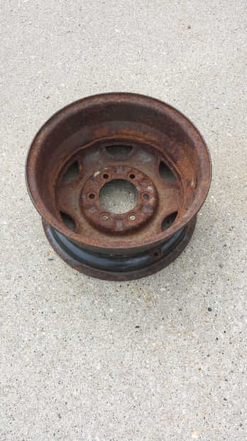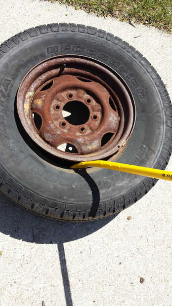 Quitar el borde de la goma era de lejos la etapa más frustrante. Después de ver varios videos y tratando de quitar los dos trozos separados realmente acabé usando una sierra reciprocante con una cuchilla de corte de metal para cortar el talón de la llanta y luego apalancar el borde hacia fuera con una varilla roscada y un destornillador grande.