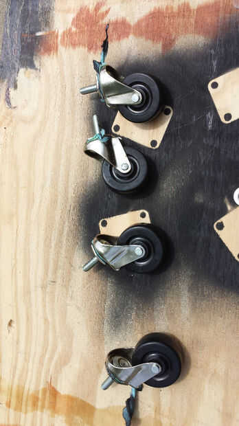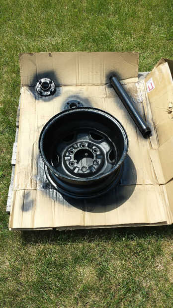 El siguiente es el cuadro. Usé pintura de calor alta Rustoleum que es específicamente para parrillas. Va en al igual que cualquier otra pintura en aerosol (si cualquier cosa va en más suaves). Apliqué dos capas a las piezas y herrajes. He pulsado las tiras de toalla de papel en los rodamientos de las ruedas antes de pintar para que no obtener obstruidos.