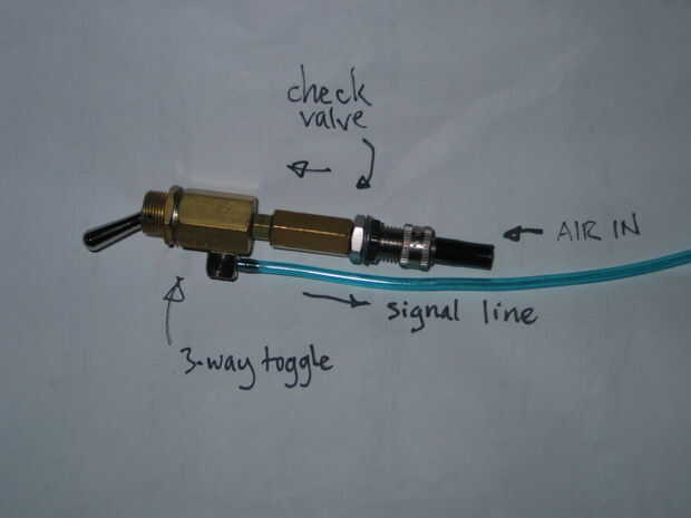 4. hay un puerto roscado restante en el 3-way (la salida) - Conecte la línea de control de la señal a ese puerto. La apertura más pequeña, sin rosca en el 3-way es el escape y no debe ser obstruido.