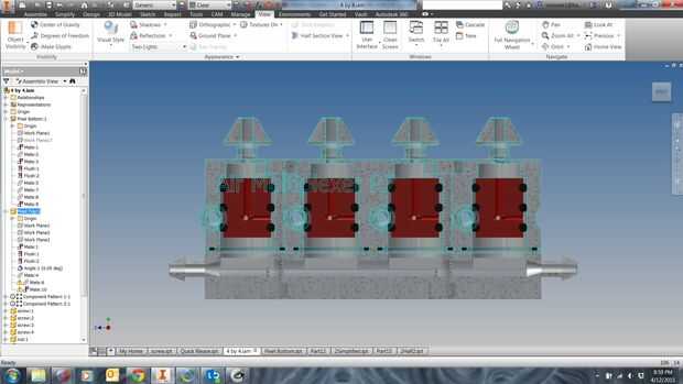 Yo estaba usando el objeto (resina base) impresoras, que tienen una resolución increíble y son capaces de crear sistemas totalmente hermético. Pensando en maneras de crear un mejor sello, decidí ir para un enfoque más tradicional utilizado en el mundo de los sellos... O-Rings. En lugar de intentar hacer un sello de los cojinetes de Buna decidí usar un tipo de pistón de la válvula, donde tres juntas tóricas garantizar un sello contra las paredes del cilindro. Tener alta presión en la línea inferior se elevarán los pistones alinear las guías con la línea superior, si a continuación, la línea superior es alta aire fluirá a través de la salida.