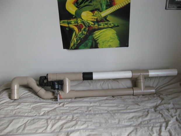 Lanzador de antena versátil es un cañón que hice para una tarea de la escuela. Estaba obligado a construir un cañón que podía disparar un nerf de bolsillo con una línea de pesca sobre un árbol. Ya que iba a me costo una buena cantidad de dinero en efectivo que decidí hacerla demasiado matar con una válvula de pistón de 2".