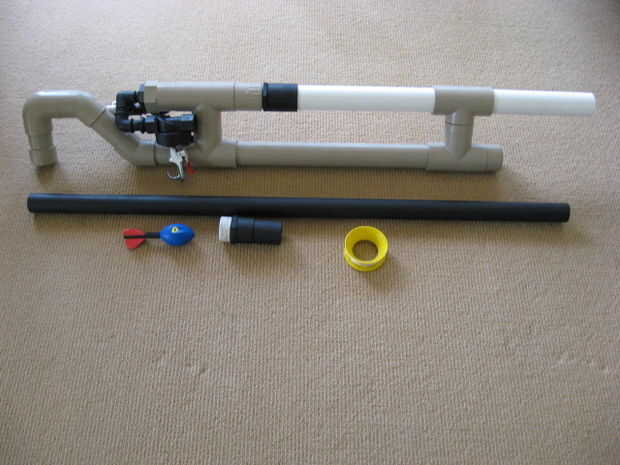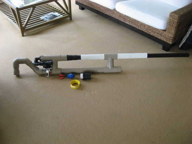 También hice un barril de pelota de golf para él también. Este cañón lanza una pelota de golf sobre 450 yardas en sólo 115 psi. Lanzará un nerf más de 120m en 60 psi. Esto es un cañón muy potente y debe ser tratado con respeto como si fuese un arma de fuego real.