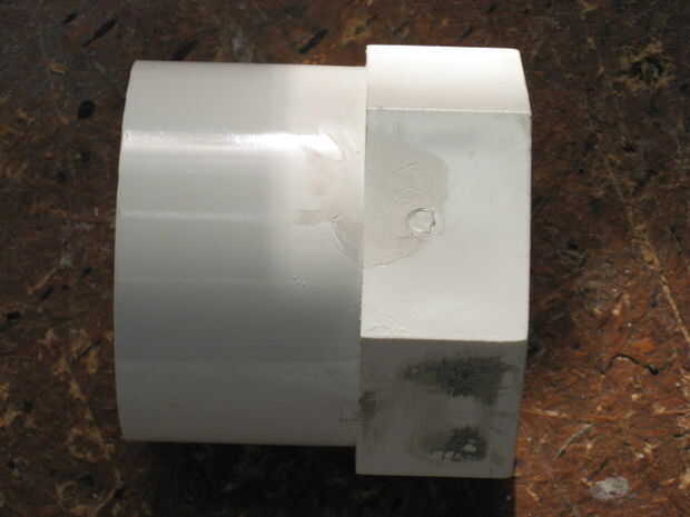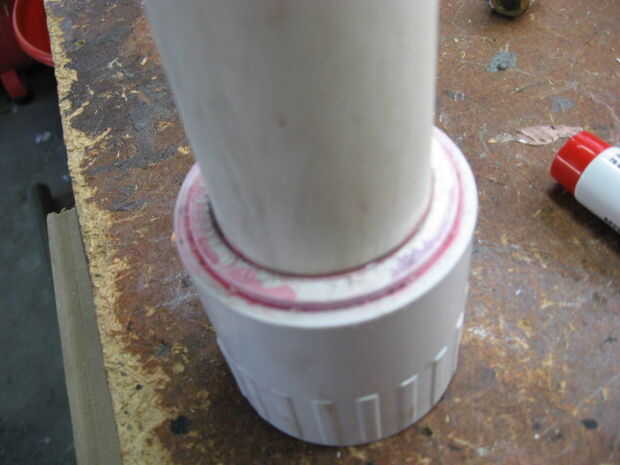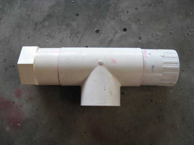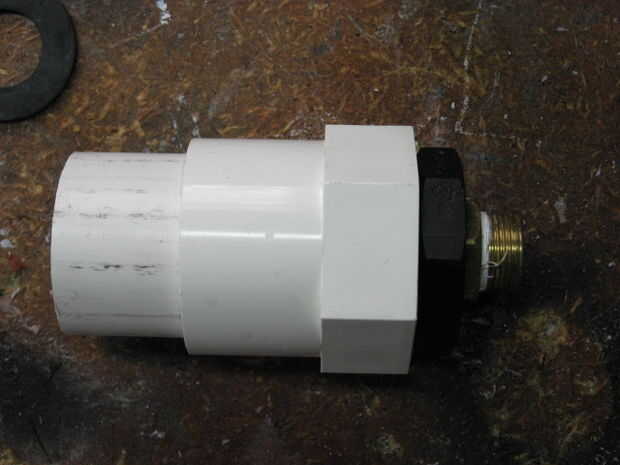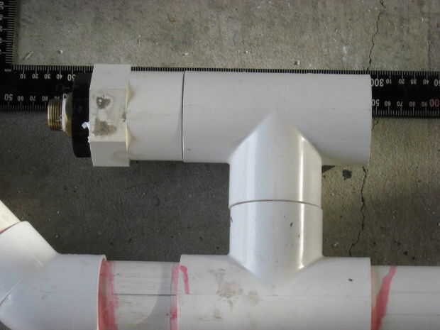 Asegúrese de que el extremo del tubo sin el adaptador, es perfectamente nivelada. El pistón va a sellar contra esto. Es absolutamente necesario que esté plana. Solvente de soldadura el buje que no está dentro del adaptador en el extremo opuesto de la t que el primer adaptador hembra es soldado con autógena también.