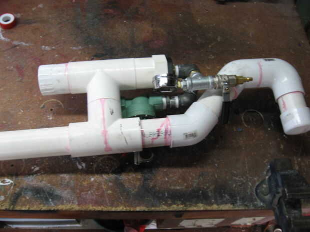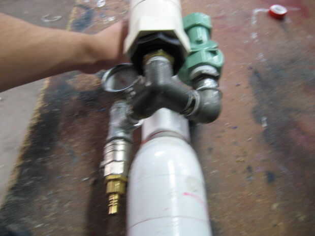 Lubricante por su pistón con lubricante de plomería y deslice dentro de la carcasa del émbolo, poner en el tope y luego enrosque el adaptador de 2 "x 1" en la parte posterior. El punto de esto es que si el pistón mierdas hacia fuera, puede acceder a la carcasa del émbolo y quitarlo y poner uno nuevo en. Pero el pistón debe ser fino.