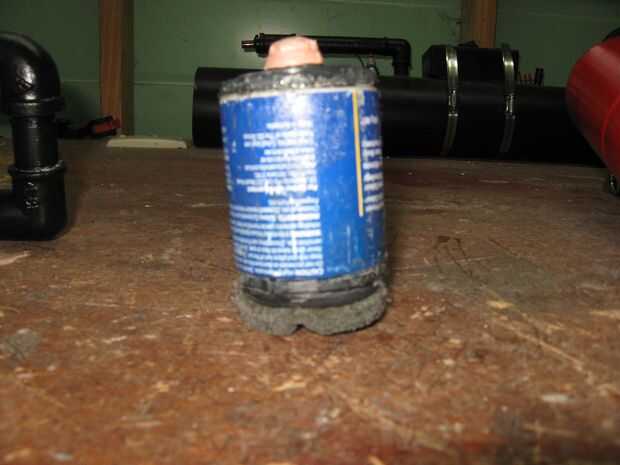Ahora corte la parte inferior 3" de su desodorante puede, cortar un poco caliente pegamento, em tirada ahí y derretirlos. Ahora el pistón debe ser aproximadamente 1/2 completa con pegamento para refuerzo.