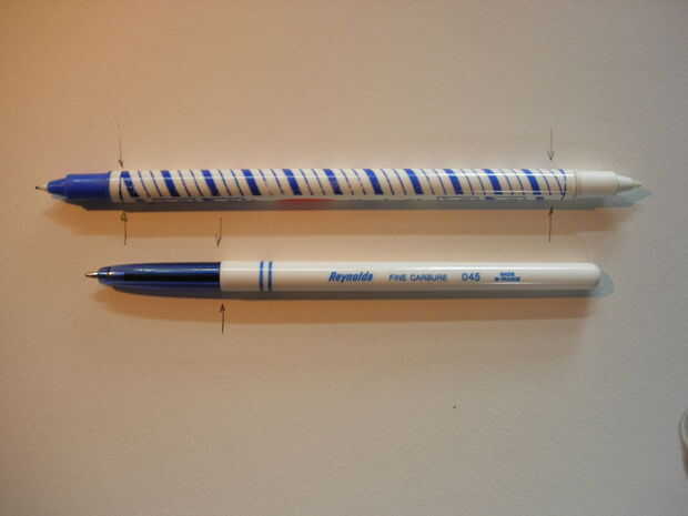 En la 1er imagen aquí puedes ver los dos bolígrafos sin las tapas (no los necesita)