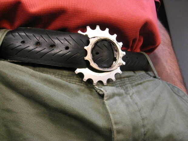 hice una correa personalizada fuera de viejas piezas de la bici. Mi idea era utilizar 2 engranajes de bicicleta para el cierre, que funciona bien y se ve muy bien. La desventaja es necesita un soldador, pulido rueda y cuero punzón para el proyecto. Me encantaría oír ideas sobre cómo hacer algo similar con menos herramientas.