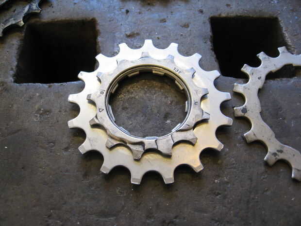 Terminé usando un engranaje 17T de una bicicleta de la solo-velocidad y un engranaje 13T de la trasera del racimo.