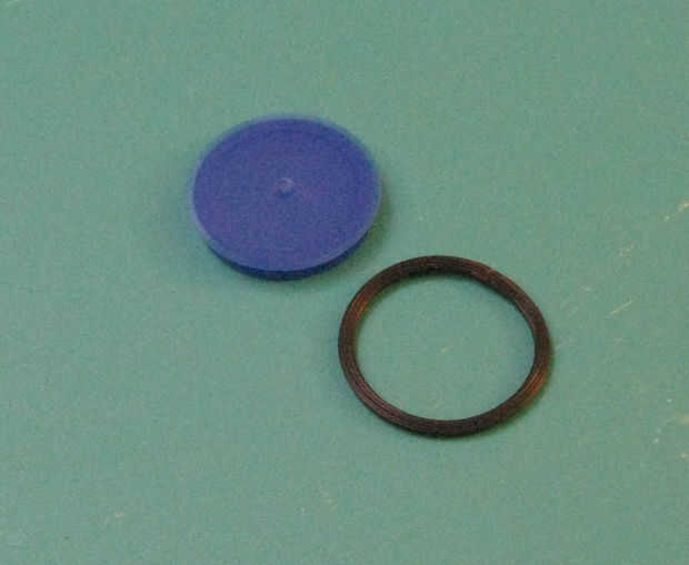 Las imágenes muestran un neumático de empaque estilo pantalla spline en una rueda que es una tapa de jarra de plástico de leche. Para este disco particular, que mide alrededor de 1,4 pulgadas de diámetro, la longitud de la tira era 4 1/8 pulgadas. El tamaño de spline utilizada fue de 0,125 pulgadas.