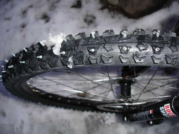 Montar en tramos despejados o cruzar carreteras es muy ruidoso y un poco resbaloso en comparación con el hielo pero totalmente controlado, ahora entiendo la descripción de 'sonar como siendo perseguido por una jauría de perros', pero también lo describiría como el primer sonido que hace que un pinchazo, fue suficiente para hacerme parar y controlar la presión! Me encanta el look de los neumáticos aunque fue muy cuidado de no corren en nada/nadie como los picos afilados harían algún daño increíble. (Si se construye un conjunto de ellos yo no soy responsable de lo que hacer con ellos.)