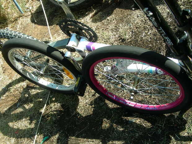 Tal y como dice el titulo, repita para el otro lado y usted terminará con una mancha incluso agradable para tu bicicleta al igual que los de estas fotos. El siguiente paso le dará algunos consejos sobre que neumáticos son mejores para hacer manchas y por qué.