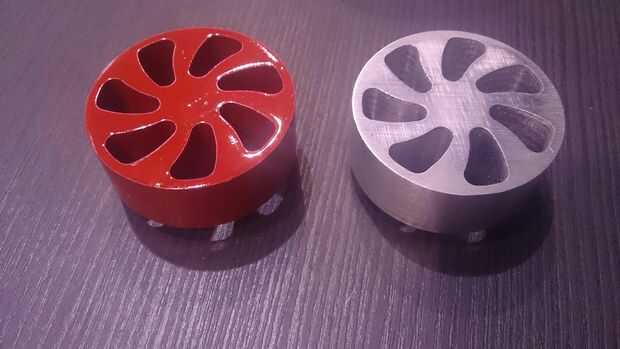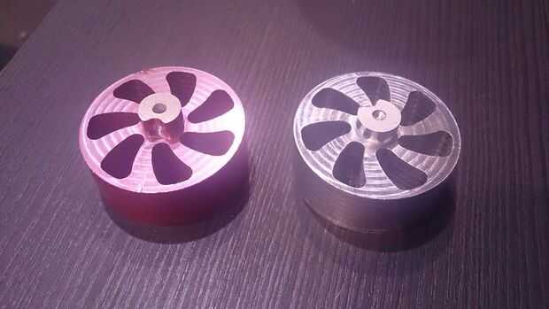Hicimos par de variantes para las ruedas incluyendo el plástico unos impresos en la impresora 3D, pero su calidad no era satisfactoria. La variante final es hecho de aluminio. También experimentamos con su tamaño para caber en el canal que tuvimos así también hicimos par de probadores de aluminio. Elegimos uno más ligero para que sea más fácil para el coche para moverse. Para modelarlos utilizamos SolidWorks. En las fotos se puede ver ambos alumunium y pintaron de llantas de aluminio rojo