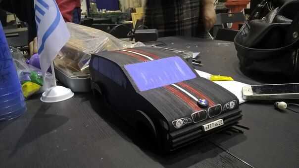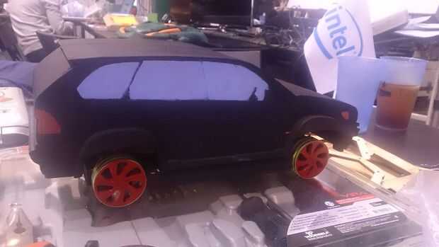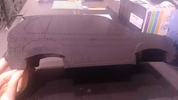 Simplemente pintamos nuestro coche negro y nuestras ruedas rojo :) pero luego agregamos líneas más estilizadas-n-rojo en el cuerpo del coche