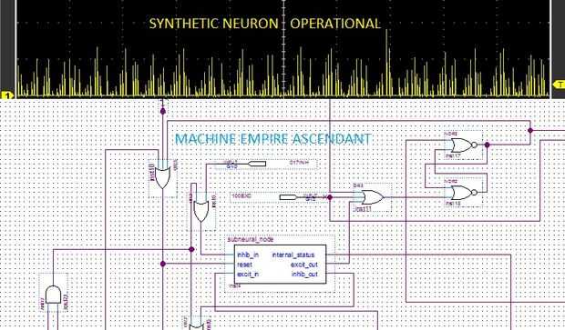 Aquí es un circuito para poner en una FPGA (en el archivo .zip tiene asociados con el primer paso y fue probado en un Altera EP4CE6E22). Se pretende imitar el funcionamiento de una neurona biológica contando pulsos entradas excitatorias y la inhibitorias que se pueden asignar pesos distintos, y disparar un "axon" (salida) una vez que el número de los pulsos de entrada supera el potencial umbral. El siguiente paso en el desarrollo será montar una red con estas neuronas sintéticas.