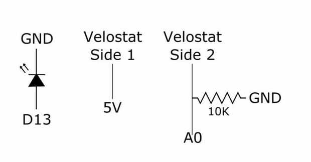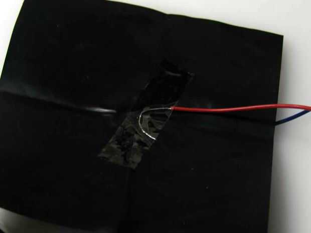 Para el velostat, tira dos cables por lo que tiene alrededor de una pulgada de alambre expuesto. A continuación, sujete a cada lado de la velostat utilizando alguna cinta.