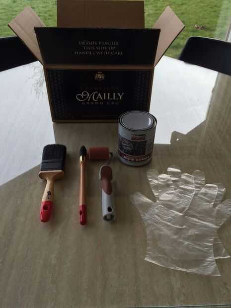 -Pintar la caja con goma líquida en el interior con la brocha de rodillo y pintura.