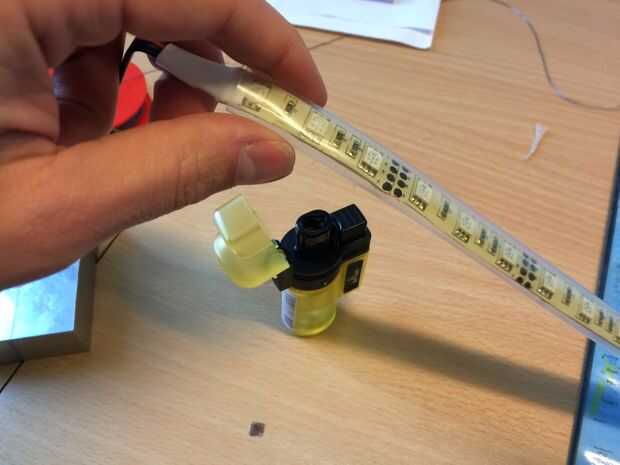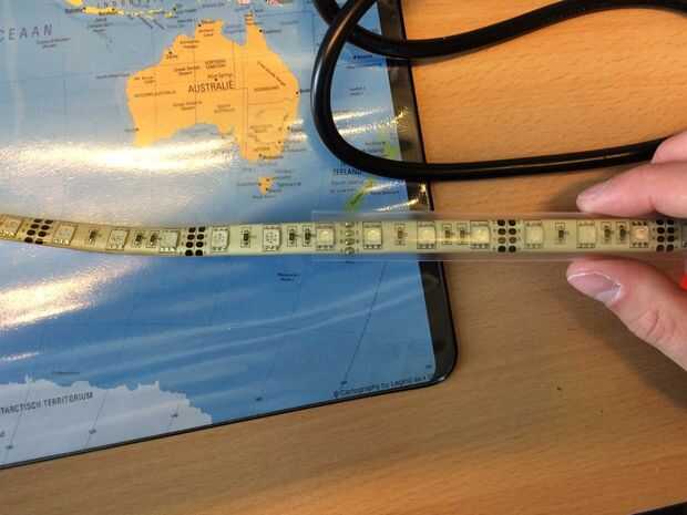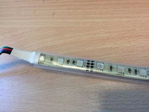 -Tomar la tira led y deslícela a través del tubo transparente retráctil.