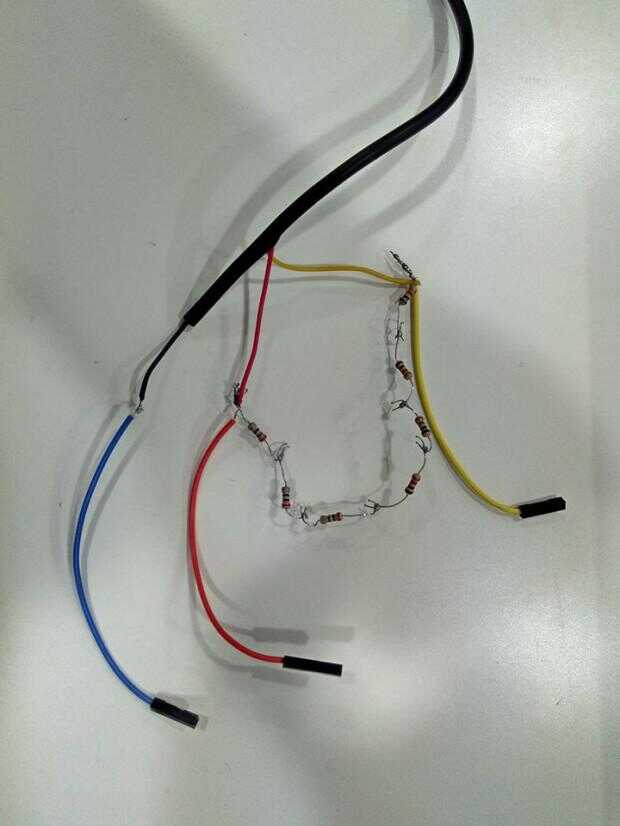 Al final, debe verse así (no tenemos un 4.7 kOhm, así que soldar unos pocos juntos):