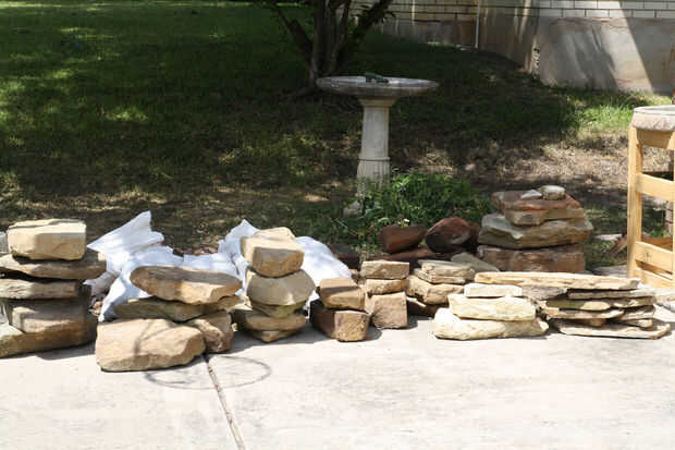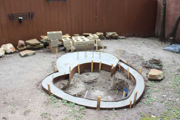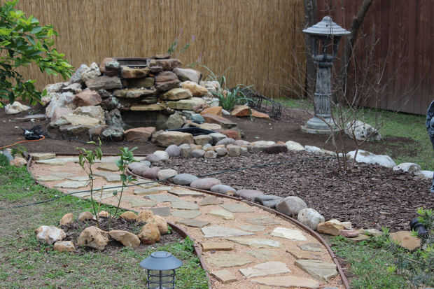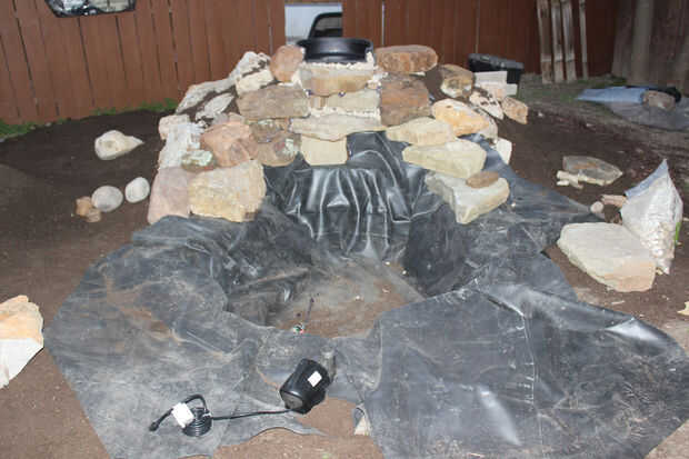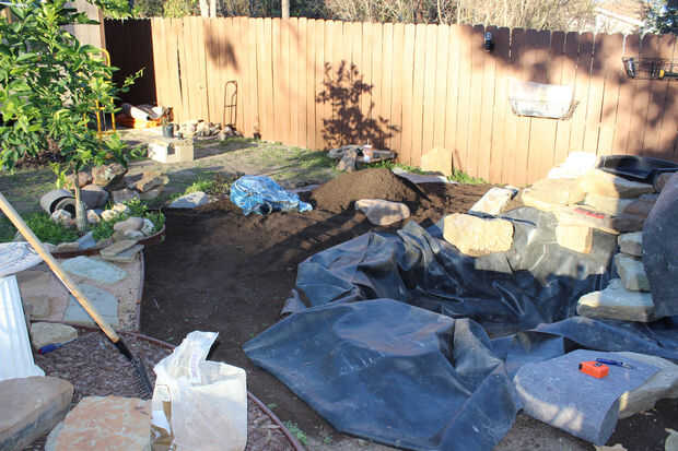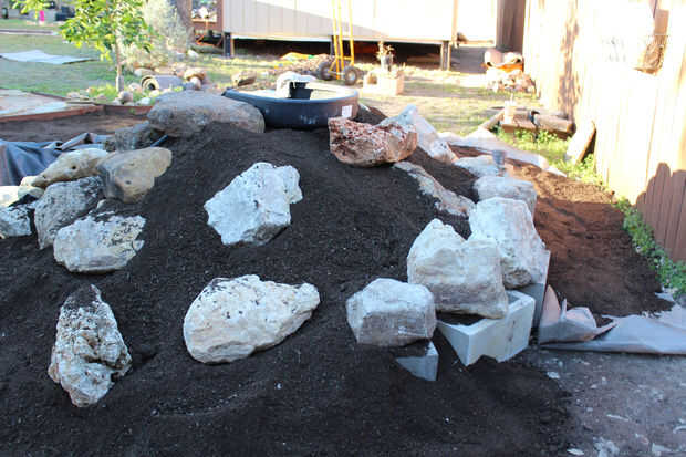 Rock, Rock, Rock. las rocas deben colocarse según la forma del estanque Recuerde esto. Esto es una laguna de forma libre. Espuma se necesitarán para llenar los vacíos en el borde de la caída del agua para mantener el agua dentro de las cataratas. suelo será necesario utilizamos 2 yardas de césped y suelo de jardín mix.we todavía necesita más. (P.S.) La mayoría de la roca utilizada fue mossrock, piedra del adoquín de río y Lajas grandes. la mayoría de la roca fue dada o descubierta en la naturaleza.