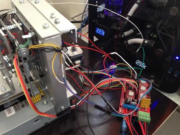Algunas impresoras disponen de un motor paso a paso situado hasta el frío del extremo del extremo caliente, junto con un montón de engranajes. Los engranajes y el motor se llama la extrusora.