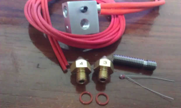 El cartucho contiene el elemento calentador y se inserta en el extremo de aluminio de la cabeza. El hotend se calienta y puede derretir el plástico que es exprimido por el noozle. Este paquete incluye 2 noozles: 0,3 y 0, 4mm.