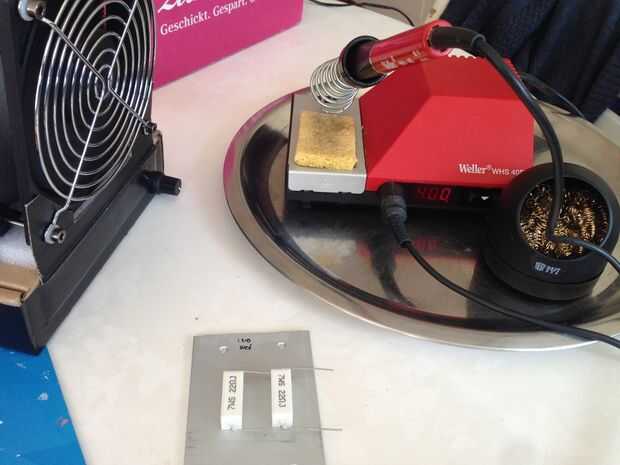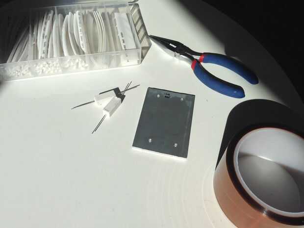 Soldar un alambre en cada una de las piernas y me lo cubrió todo en termo retráctil.